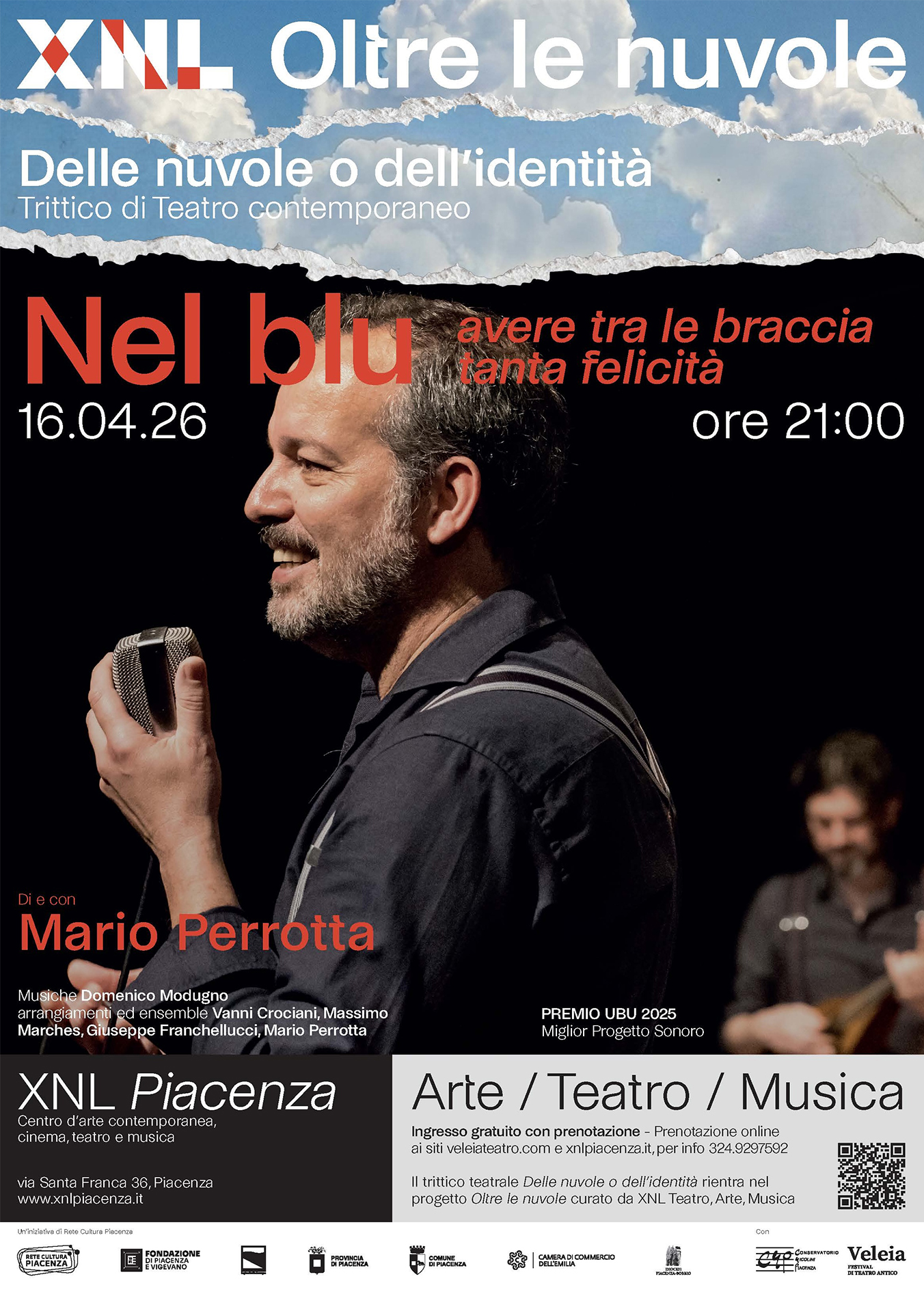 Oltre le nuvole – Evento esclusivo: giovedì 16 aprile “Nel blu” di e con Mario Perrotta!